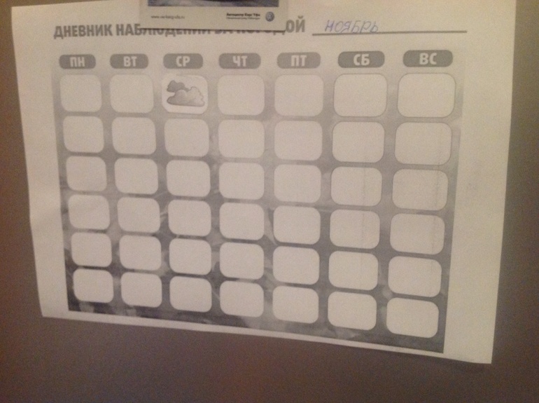 2.5. Еще мы повесили дневник наблюдений за погодой. Сегодня у нас пасмурно. Будем стараться следить.