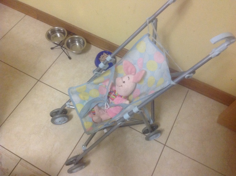 Только проснется и сразу,каталки,каляска в руки и вперед по всей квартире)Кот с собакой в ужасе,забиваются кто куда)