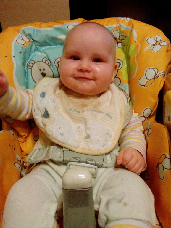 Вчера первый раз ела сидя( полусидя) в стульчике.Как большая))Очень ей понравилось там сидеть,ротик на ура открывался