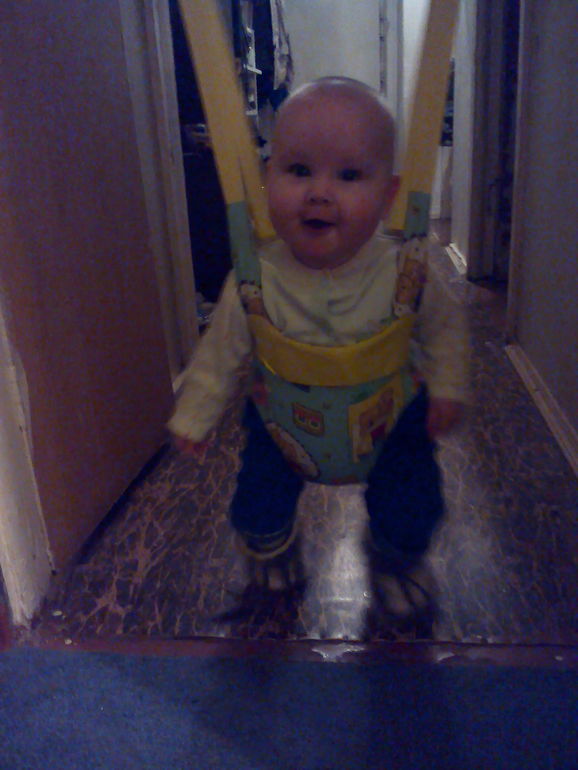 Сегодня,точнее уже вчера,наконец то папа нам повесил прыгунки.( пока вешал,стояла и думала,а что же это мы родители непутёвые старшим то ничего не вешали???ну качели там например)))И вот крючок вкручен,на него торжественно вешаются прыгунки..в прыгунки не менее торжественно запихивается сажается дочка и тут понеслось...