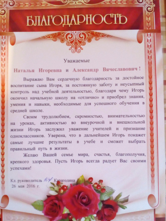 Ну вот и отстрелялись мы 4 и 8 классы)Завтра у сына выпускной.Сегодня на последнем звонке и торжественной линейке Игорю и Евгении вручали грамоты)))Как всегда я прослезилась..Игорю 1 сентября ещё предстоит вручение грамоты,а мне благодарность,за учебу на одни 5 в течение всей начальной школы.