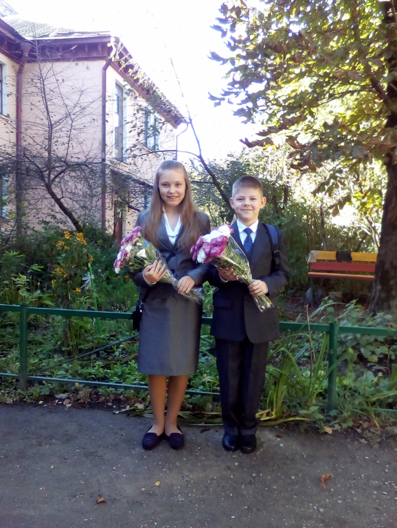 Игорек в 5-ый класс,а Евгения в 9-ый.Четверть закончили на отлично, несмотря на то,что 5(((недель проболели(делали задания дома,а папа бегал в школу отдавать
