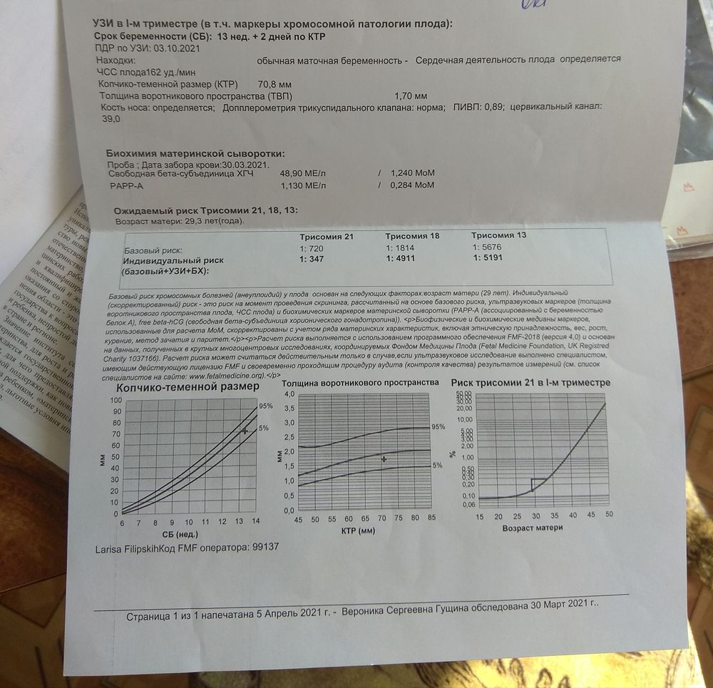 Получила биохимический скрининг papp0.284 мом, а гинеколог сказала всё нормально. Прихожу, смотрю риски 1:347 это что нормально? Подскажите девушки у кого такие анализы были ? УЗИ в норме вроде, только что это за буквы у кровотока?