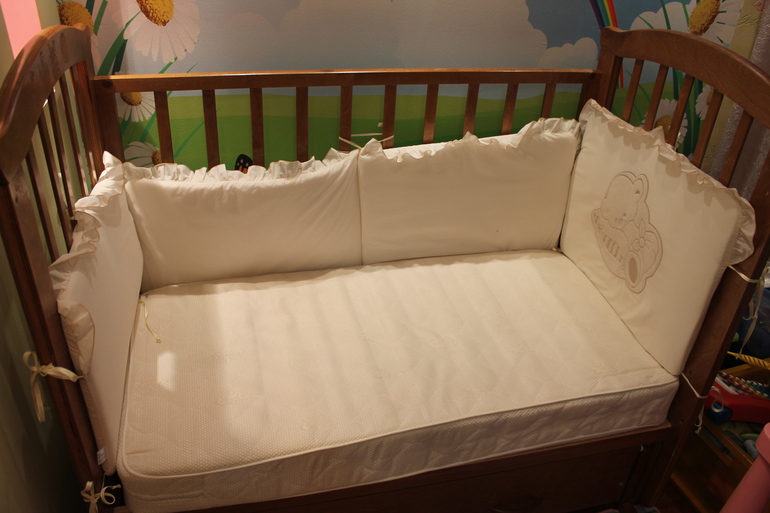 Также отдам матрас и мягкие милые бортики нейтрального цвета.