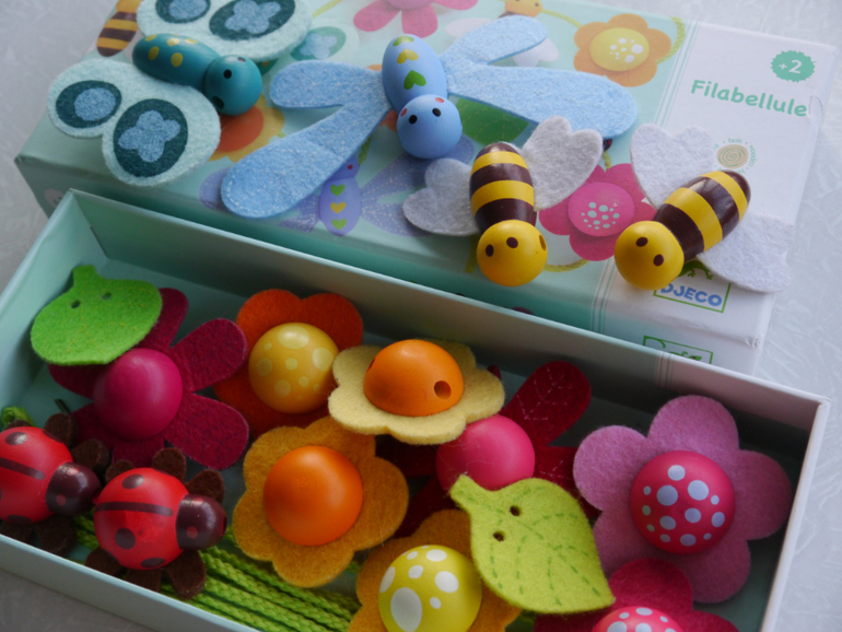5. Шнуровка Стрекоза от Djeco. Детали из дерева и фетра. В комплекте: 16 крупных деталей насекомых и цветков и 2 шнурка с длинными удобными наконечниками. Очень красивая и классная шнуровка! Детали можно использовать и в других играх с малышом.
