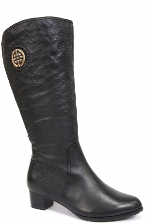 Удобные повседневные сапоги Ascalini14883-1 чер кож сап бай, практичного черного цвета полностью выполнены из натуральной кожи. Детали: застежка на молнии. широкий устойчивый каблук, присутствует рабочая резинка позволяющая увеличивать объем голенища.