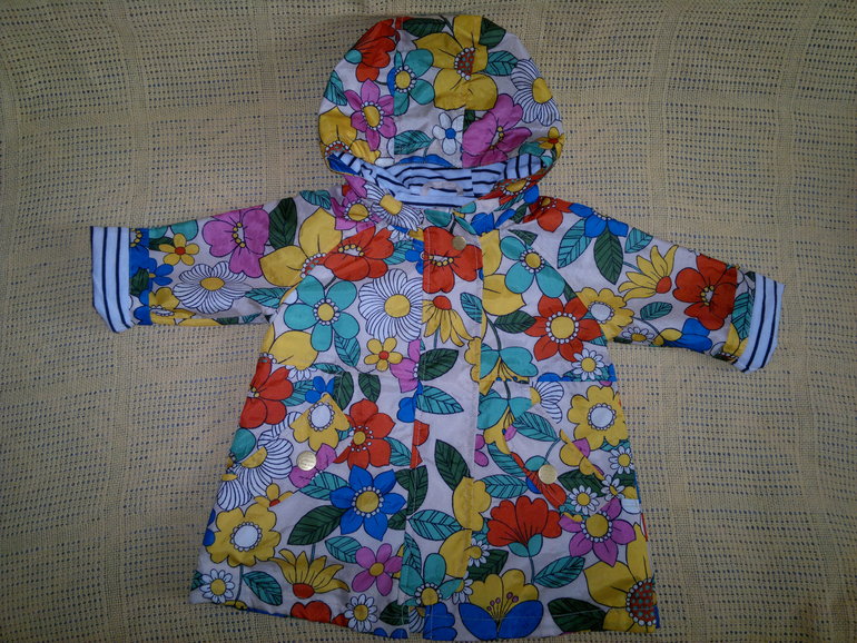 Новый, но без этикеток. Яркий дождевик на х/б подкладке. Не заменимая вещь летом в дождливую погоду. На рост 80, но можно носить с 74, рукавчик красиво заворачивается. Цена 1100 руб с почтой.