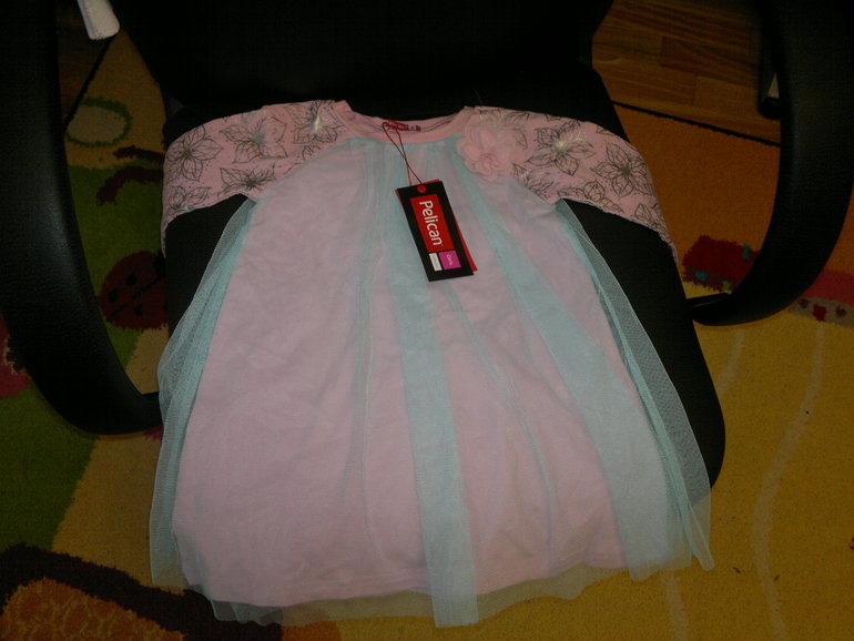 Платье двухслойное с длинным рукавом. Размер 2. Состав: нижний слой 93% хлопок, 7% эластан; верхний слой - сетка. Особенности: принт металлик; блеск на сетке; двухслойность даёт эффект неонового сияния; декоративное украшение - цветок.