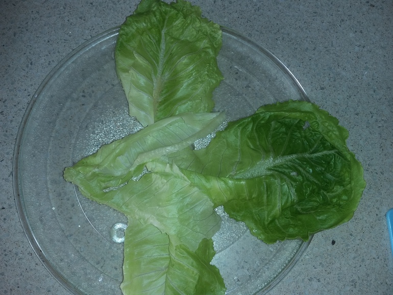 Начинаем собирать салат. На плоское блюдо уложить листья салата - плавники и хвостик: