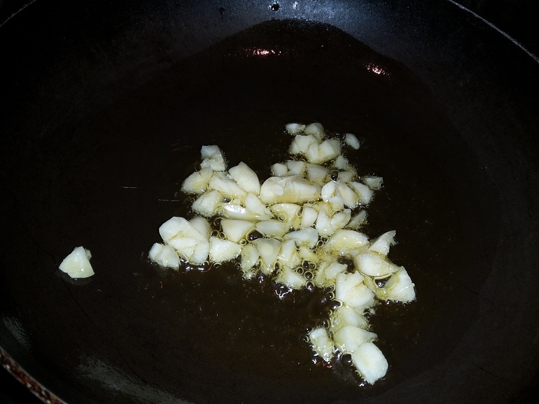 В это время на оливковом масле поджарить 3 зубка чеснока: