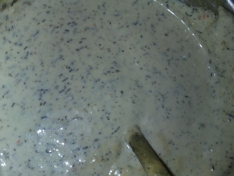 Можно приготовить соус. Я использовала сливки 20% и пакетик:
