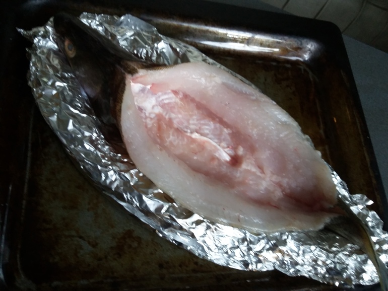 Удалить кости и внутренности. Положить выпотрошенного судака в форму из фольги: