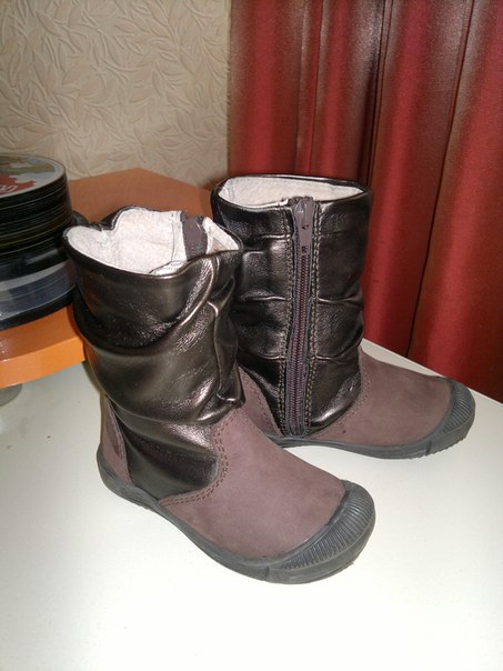 Сапоги кожа весна-осень б/у, носили когда сидели в коляске, следов носки нет р-р 22, 13 см по стельке, Французская фирма Orchestra,цена 500р