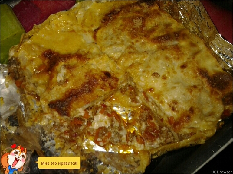 разогреваем духовку 220', на дно формы наливаем половник бешамеля и 4 лодки фарша, укладываем листы лазаньи, у меня ровным слоем листы для бешбармака:-), потом опять бешамель фарш тертый пармезан.. итак 4 слоя, верхним щаливаем остатки бешамеля и пармещан и в духовку на20 минут, выключаем и еще 10-15 минут в выключенной доходит, очень просто и вкусно и бюджетно, пакет бешбармака около 70 р стоил, на пару лазаний хватит:-)