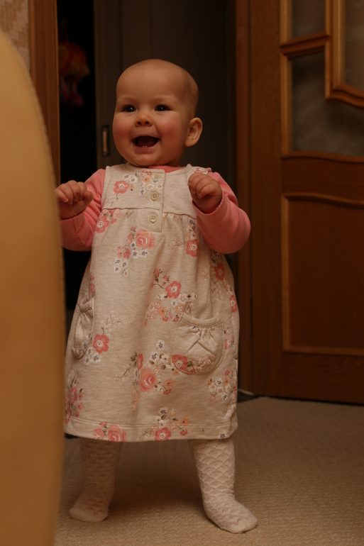 А сегодня совсем сами пошли, научились вставать наконец то и затопали, упали, встали опять затопали, потом я очень радовалась и хлопала, а Олеся довольная смеялась и была очень горда собой:) 10м.9д.