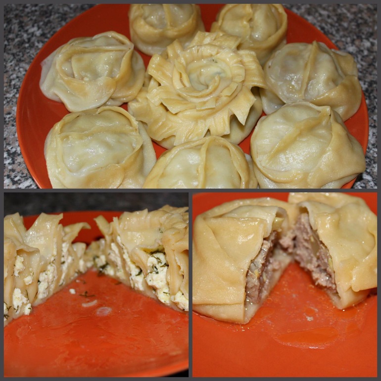 Так же как и Тесто для пельменей , я долго искала "своё" тесто для мантов. Хочу поделится с вами заварным тестом, оно получается очень тонкое, эластичное, но при этом не рвётся и сок остаётся внутри. А ещё я делаю с двумя начинками.