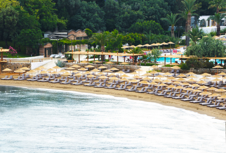 Собственный песчаный пляж. Длина 500 м. Есть деревянный пирс. 2 шикарных песчаных пляжа с кварцевым песком и пологим входом. Лежаки, матрасы, полотенца, зонтики- бесплатно.