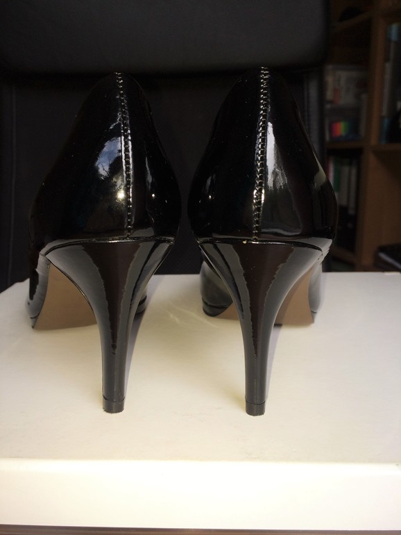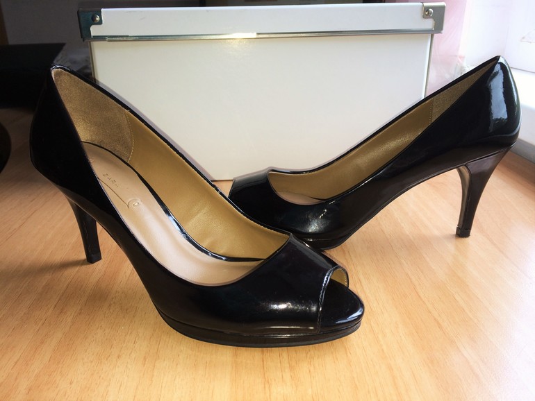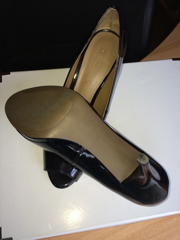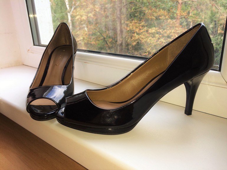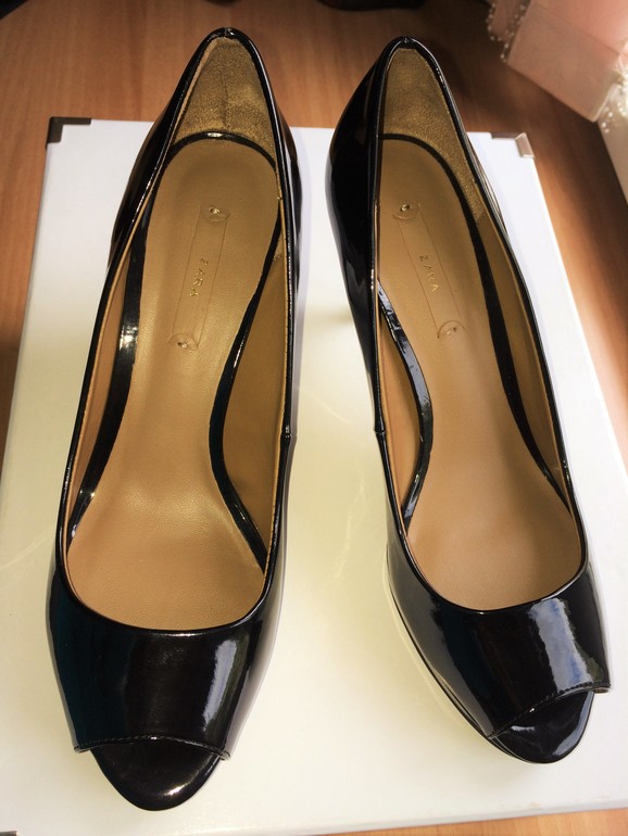 Туфли Zara черные, лаковые, с открытым носиком, размер 38, но можно и на 37 пробовать-одевались один единственный раз. Отдаю за 1000р. Длина стелек: 24,5 см, каблук: 7 см из них 1см на платформу. Примерить можно на Гидрострое в любое время или договоримся.