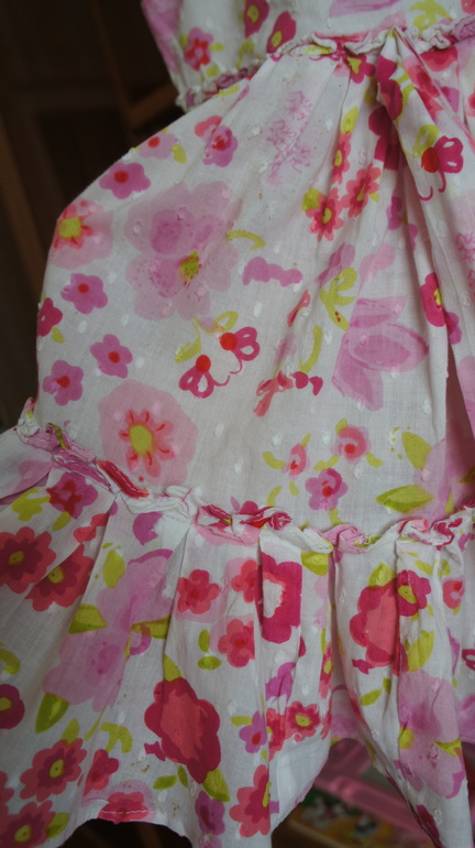 На этом платье не отстирались пятна от банана, в принципе их под складками и лентами не видно, очень легкое воздушное, х.б (мы их в бант не завязывали, т.к. пузатики).