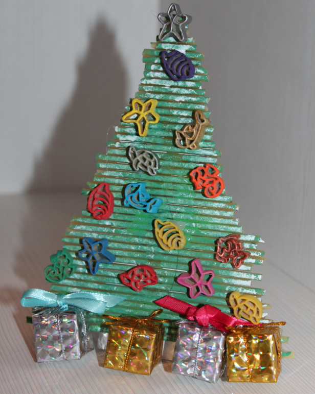 Елочку делала старшая,украшала младшая))) Макароны самые простые из Ашана на развес,красили гуашью Луч)