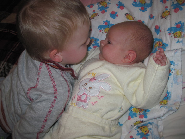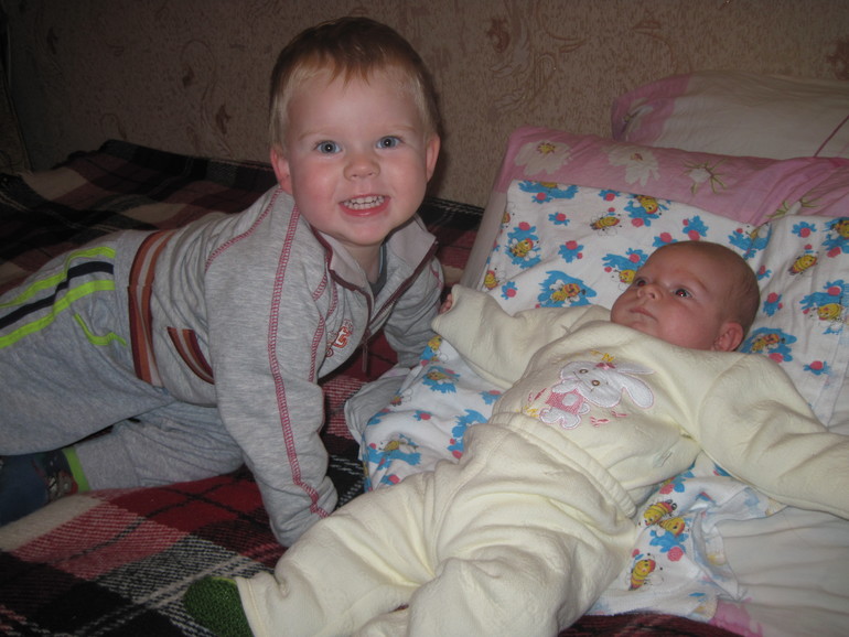 Никита совсем взрослый стал, особенно с появлением нового члена семьи - младшего братика. Никитос его ласково называет "бааатик" *( протяжно, потому что Р не выговаривает), сегодня перед купанием Темыча, бабушка Никитке дала возможность подержать братика на ручках, точнее обнять его за торс, так Никита еще и поцеловал его в открытый рот от радости