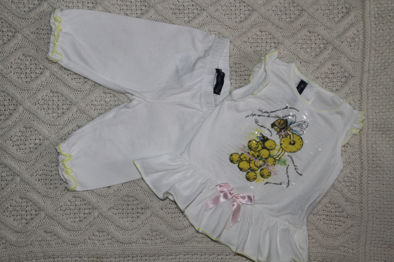 Костюм Miss blumarine 9 мес. - 1000 руб. (нюанс - малюсенькая дырочка на штанинине - см. фото)