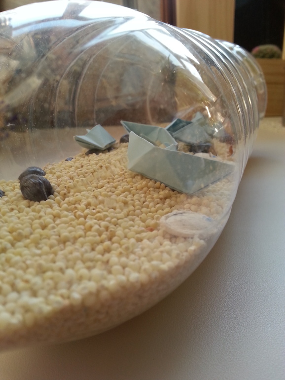 В среду рисовали на манке, правда спустя тридцать секунд это превратилось в разбрасывание крупы, ну ничего. Исследовали разные процессы.
