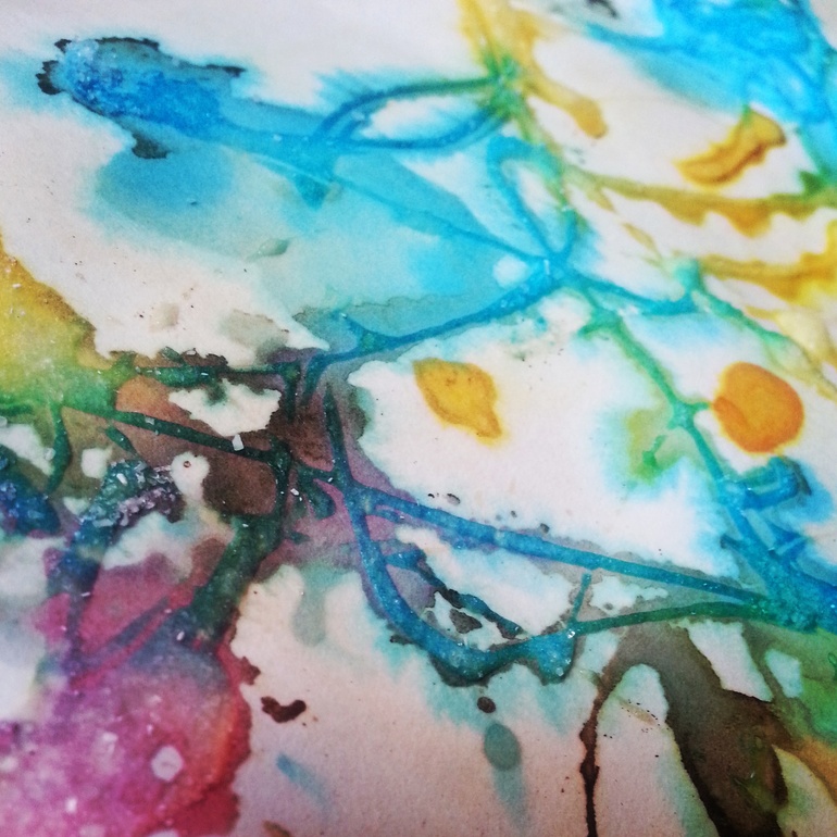 В пятницу рисовали. Только не пеной, а подкрашеной водой на соле и клею. Творчество, вообще, отдельное и очень тонкое дело. Обязательно под настроение. Повторяли цвета, восторгались красотой ;-)