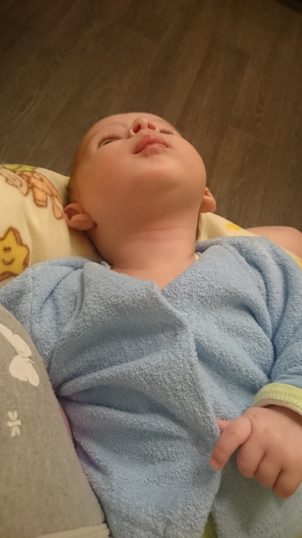Лапуськи то какие) Оль, а как с переворотами, на живот? Саша что то у меня на хваталках зависла