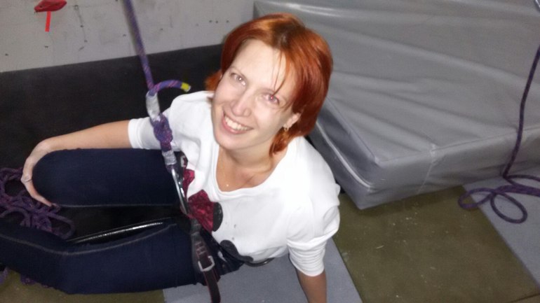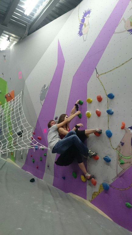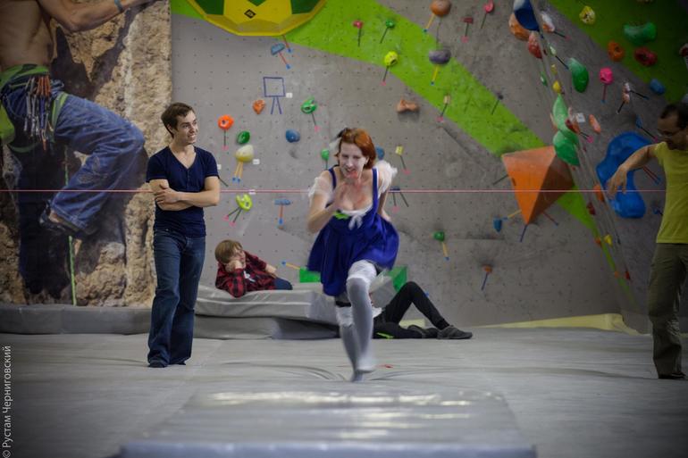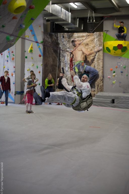 Были забавные игрища, Твистер на стене, соревнование кто проедет дальше на мате с разбегу. И гвоздь программы троллей. Это такая веревка под наклоном по которой ты катишься. Самое забавное что специально для меня сделали обратную систему, т.к. я не умею лазить. Я окончательно расслабилась и прониклась этими замечательными людьми. Было реально круто!!!