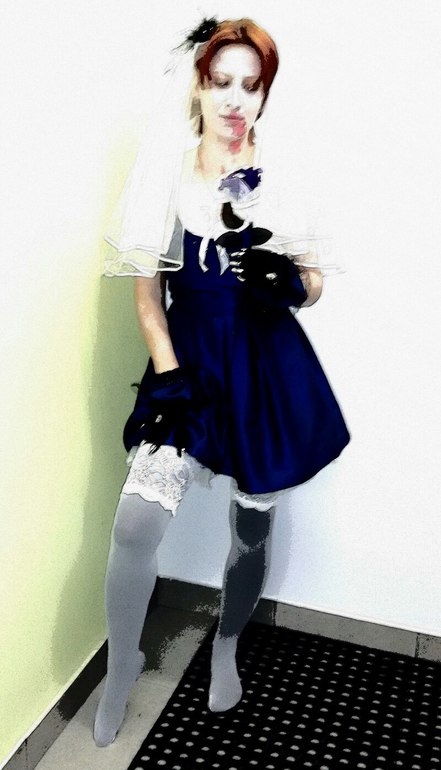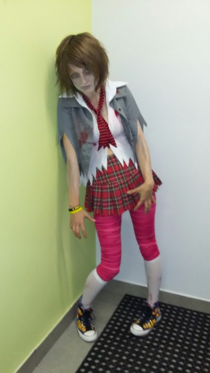 Пошли мы с ней примерять свои костюмы и зомбировать лицо, организаторы устроили конкурсы и Наташа выиграла среди девочек.