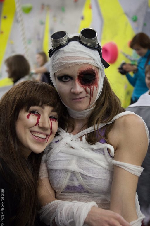 Вот такое необычное предложение я получила от своей подруги - отметить этот заморский праздник нечести на скалодроме. Я даже не раздумывая сразу согласилась. Провести время со спортсменами в зомби костюмах, о чем ещё можно мечтать?! По началу мне было немного не по себе, никого не знаю и все такое. Моя подруга Наташа, которую зовут Лето среди друзей, всячески меня там развлекала и не бросала, за что ей отдельная благодарность.
