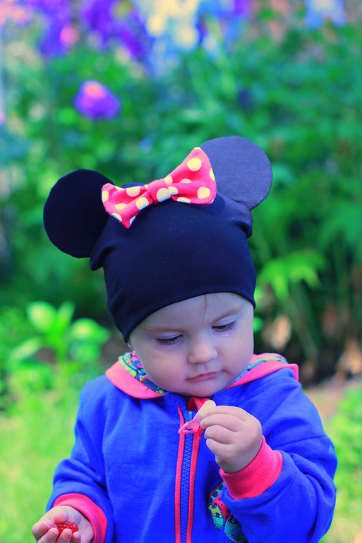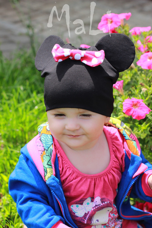 Ну я просто не могла не показать вам какие теперь мы мимишные шапочки шьем на заказ, в стиле "Микки Маус". Моей Ли очень и очень понравилась, даже снимать не хотела.