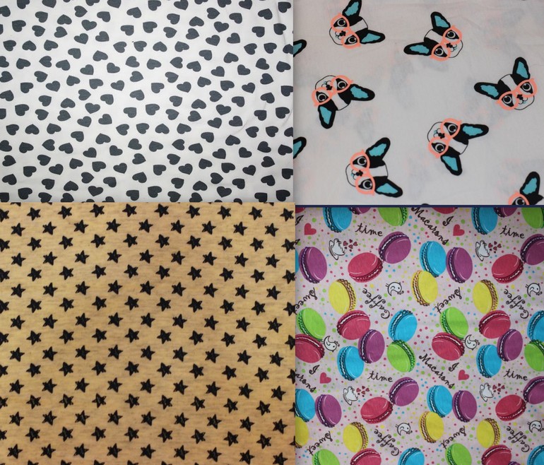Множество расцветок ткани, ткани все натуральные хлопковые.
