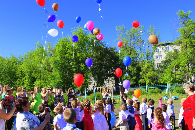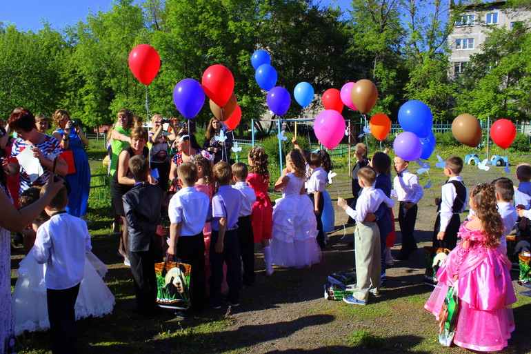Ну и по традиции запуск шаров в небо и прощание с детским садом.