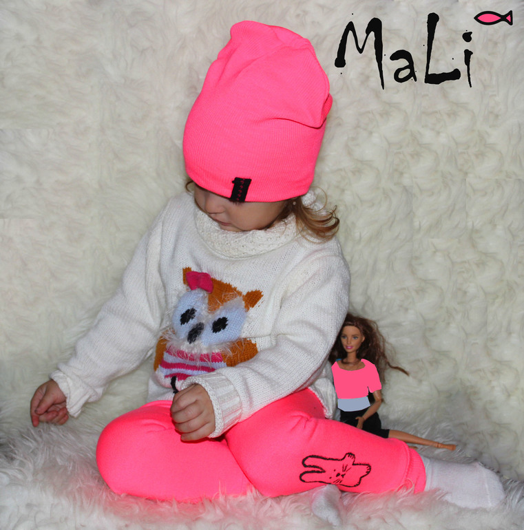 Розовый неон. Стильная шапочка и легинсы - модненький комплект.