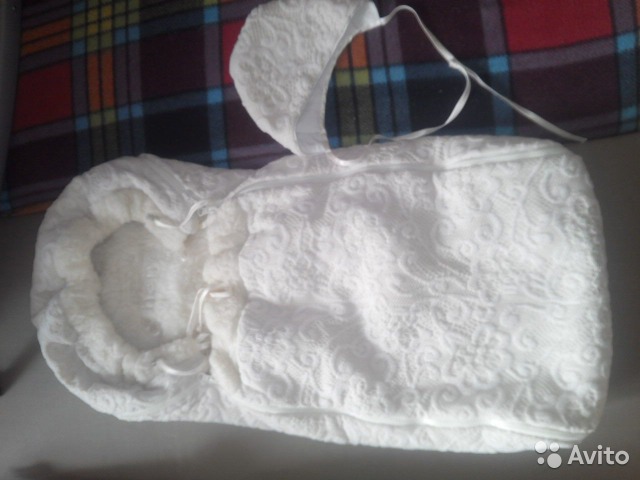 Шикарный кружевной конверт в идеальном состоянии для новорожденного нежного кремового цвета, полойдет и мальчику и девочке.