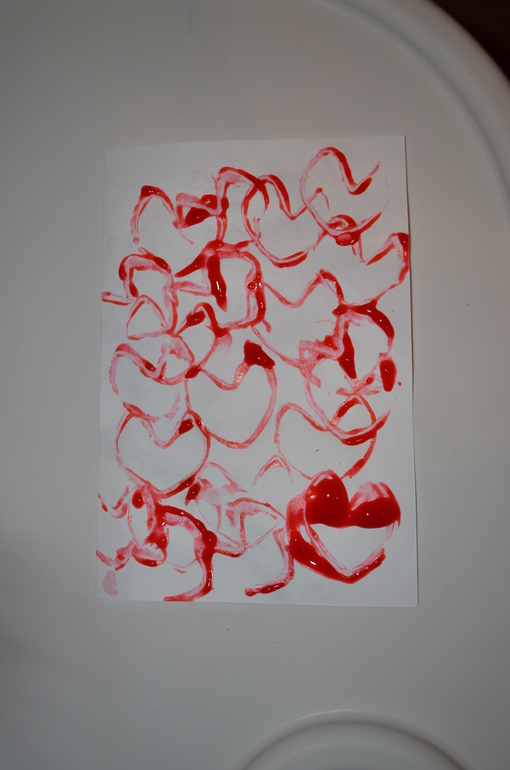 - налепили сердечек на бумажное деревце (за идею спасибо замечательной мамочке Ольге из Мариуполя),