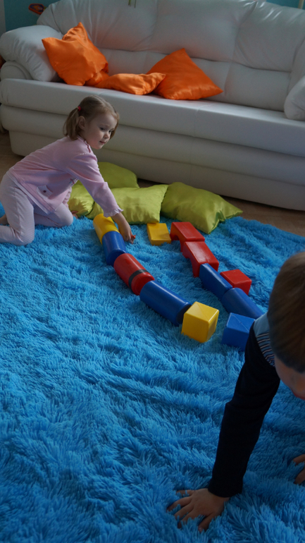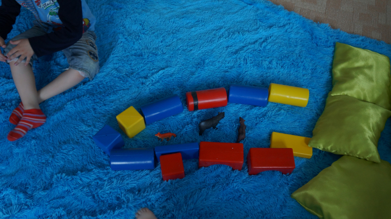 И конечно же построим, полуостров окружен водой - это синее покрывало, материк - это зеленые подушки! Все готово можно лететь!!!!