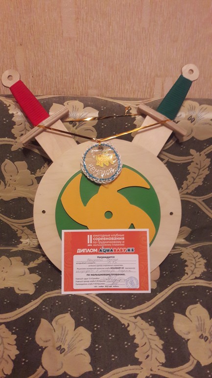 Самое забавное - залез в бассейн с пластиковой вешалкой. Периодически, между упражнениями, зависал под водой и "стрелял" из лука-вешалки)))) А потом ему вручили пряничную медаль "Чемпион" и диплом) Папа дома подарил деревянные мечи и щит. Радости и гордости - через край!)) ![]() |