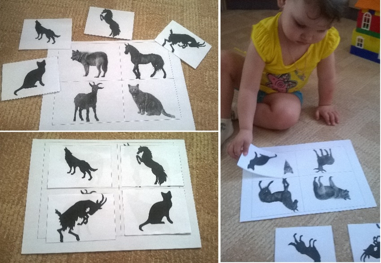 Разложили теневое лото, такое у нас было в первые, тени отличались от картинок, справились
