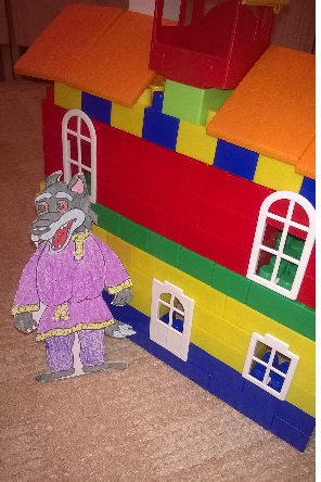 Вернулись к сказке. Пока мы садили огород Волк ходил к кузнецу и он сделал ему тоненький голос как у мамы козы. Коза ушла в магазин и волк сразу же побежал к дому козлят, постучал и запел песенку тонким голоском, козлятки решили, что это мама и открыли дверь, от испуга козлята не успели спрятаться и волк их всех поймал, кроме одного