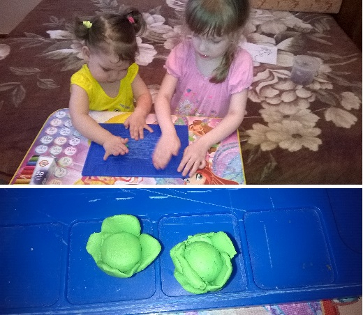 Коза попросила Юлю и Алену помочь приготовить салат из капусты для козлят. Сначала мы ее рубили, потом солили и мяли под стишки: