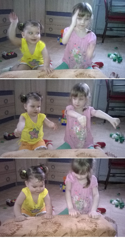 Занятие прошло легко и весело, Девчонки с нетерпением ждали, когда я их позову в комнату. Я всегда их отправляю в зал, а сама подготавливаю задания блоками на ковре, на диване, на столе и везде где придется, чтобы во время занятия не отвлекаться на подготовку задания.
