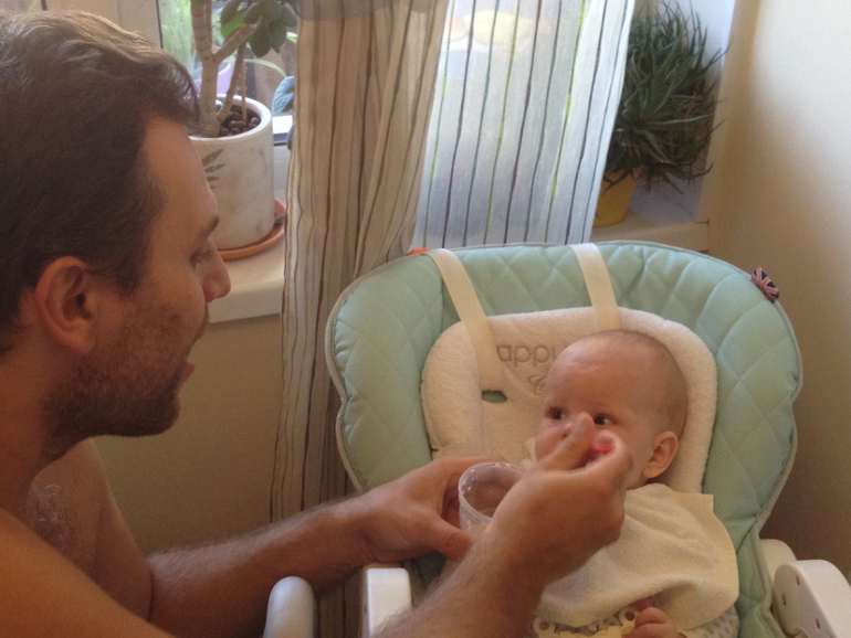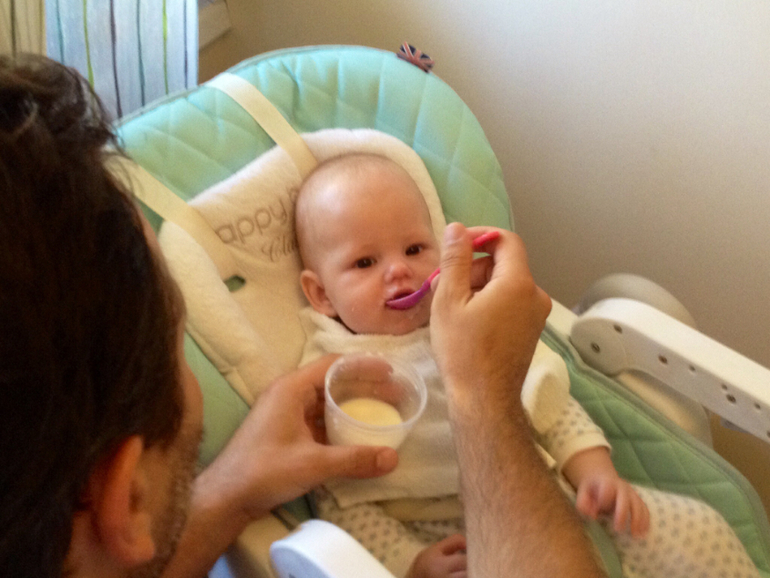 Как же это мило и трогательно,когда отцы стараются накормить малышей!чудесно!)))).....а какой стульчик у вас??????очень мне понравился на фото!)))сейчас как раз приглядываюсь к ним.