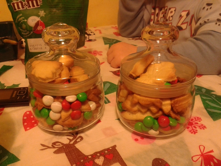 творчествоОчень давно хотелось испечь домашнего печенья в ожидании праздника и как-то не удавалась и вот наконец получилось))) В понедельник пекли, Мишке очень нравилось вырезать формочками печенюшки, но попробовав одну готовую он решил, что прибегать узнавать - можно ли ещё съесть? сырое ли печенье или готовое? гораздо интереснее, так и бегал туда-сюда, а мы напекли много, хватила и в подарок воспитателям (я не дарю шампанское, его дарят все - это банально), детям в сад и сестре на работу... и дома покушать...