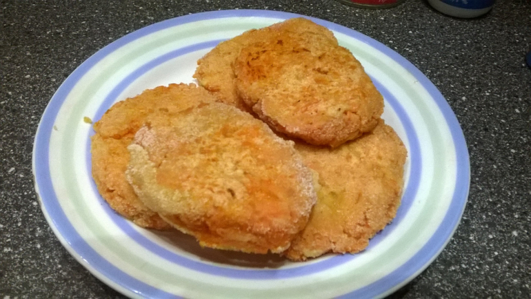 В полученную массу положила одно яйцо и немного манки. Делала я котлетки из двух средних морковок. Сформировала котлетки, обваляла в манке и обжарила.