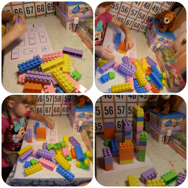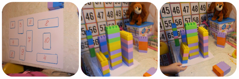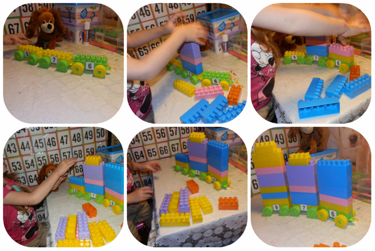 когда помогли зайкам, приехал поезд, нужно было загрузить вагоны нужным количеством блоков , для постройки домика!