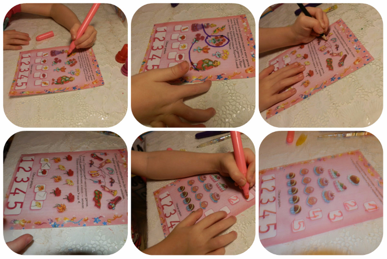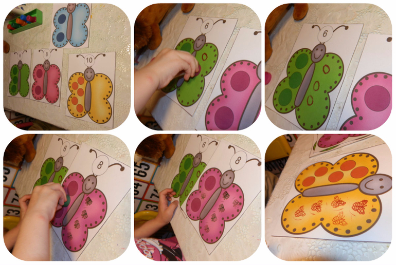 бабочкам добавляла пятна для нужной цифры, штампиками добавляла( тоже задание из математического сборника)