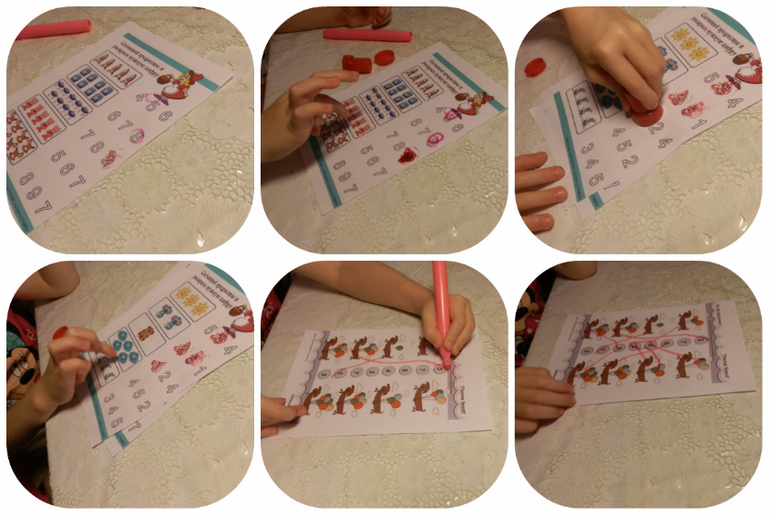 Помогали красной шапочке, посчитать и выбрать нужную цифру, тоже штампиком